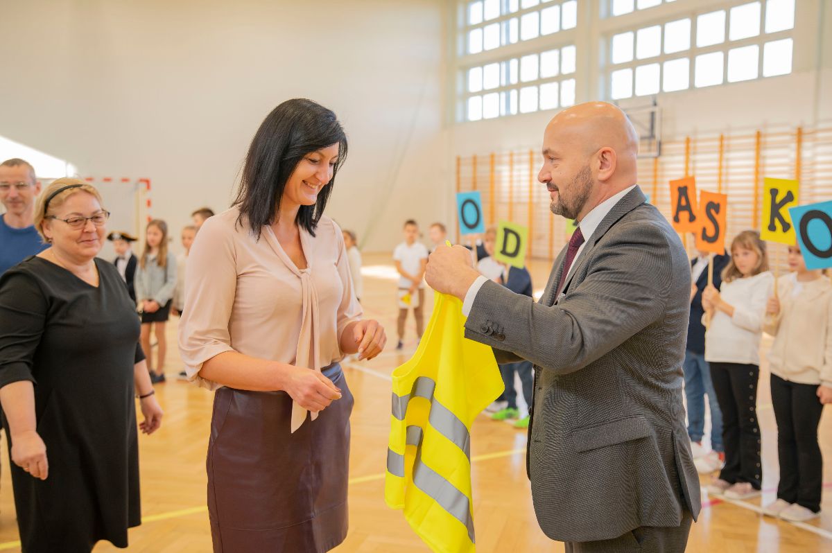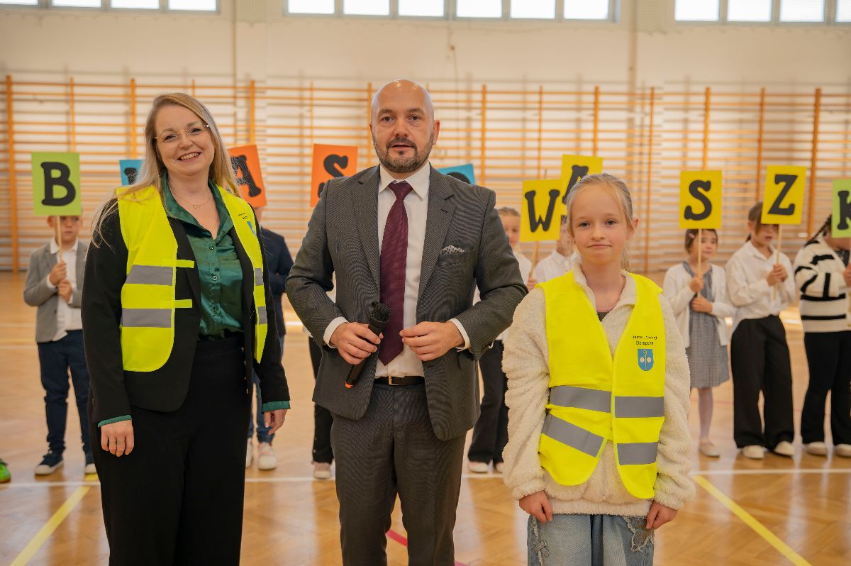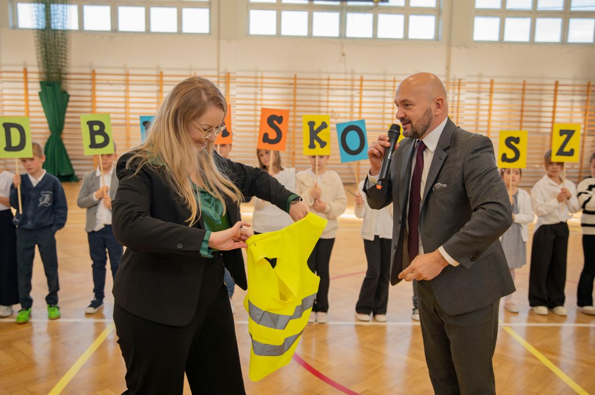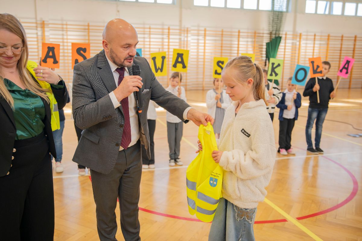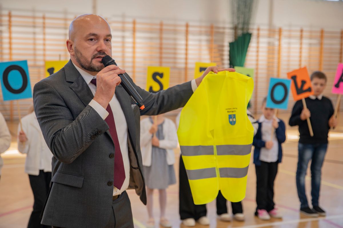 W czwartek kamizelki odblaskowe trafiły do uczniów Zespołu Szkolno-Przedszkolnego w Borzęcinie. Z tej okazji placówka przygotowała okolicznościowy występ o bezpieczeństwie w ruchu drogowym oraz pokaz odblaskowej mody, w którym dzieci zaprezentowały kreatywne sposoby noszenia elementów odblaskowych. Na zakończenie wydarzenia wszyscy uczniowie, ubrani w kamizelki, odprowadzili Wójta Gminy Borzęcin Pawła Kułaka do Urzędu, dając piękny przykład wspólnej troski o bezpieczeństwo.