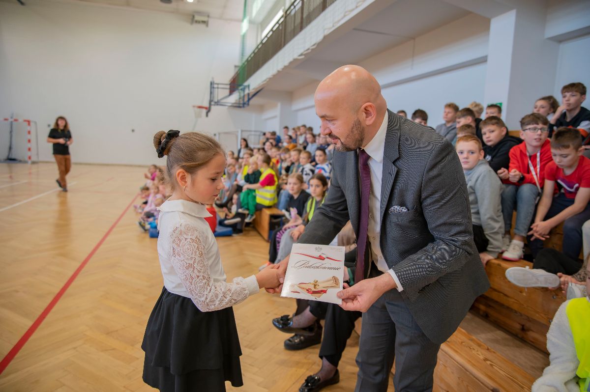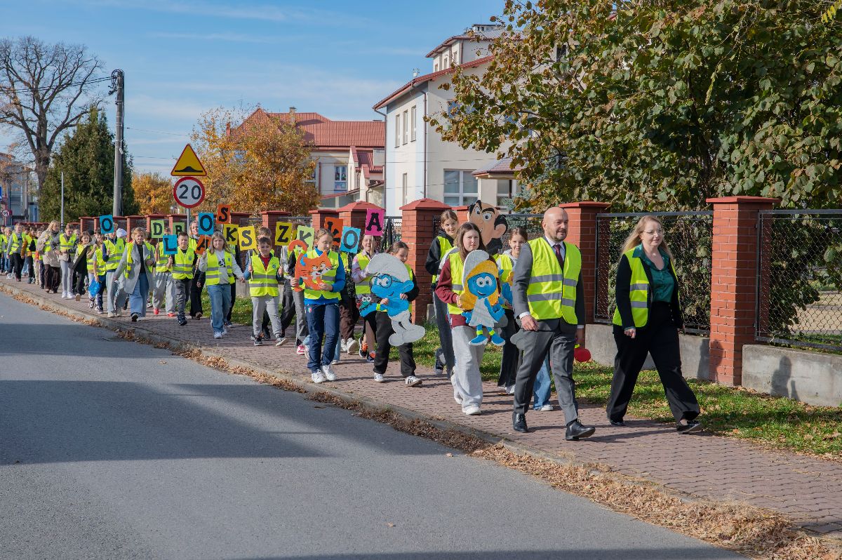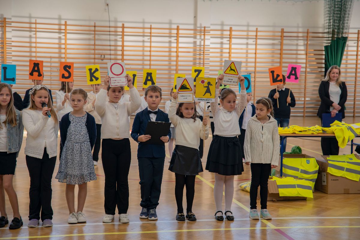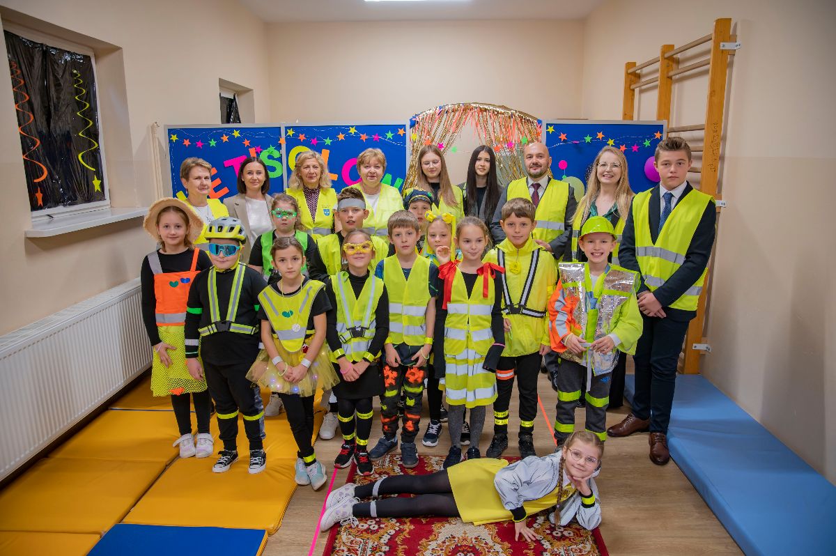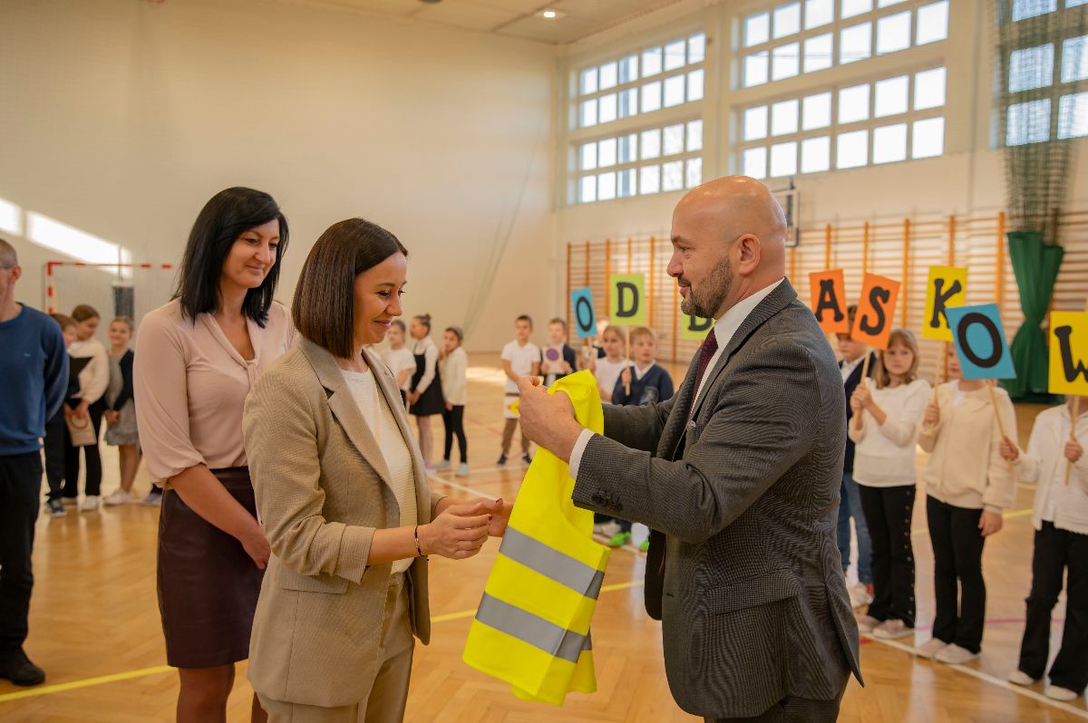 W czwartek kamizelki odblaskowe trafiły do uczniów Zespołu Szkolno-Przedszkolnego w Borzęcinie. Z tej okazji placówka przygotowała okolicznościowy występ o bezpieczeństwie w ruchu drogowym oraz pokaz odblaskowej mody, w którym dzieci zaprezentowały kreatywne sposoby noszenia elementów odblaskowych. Na zakończenie wydarzenia wszyscy uczniowie, ubrani w kamizelki, odprowadzili Wójta Gminy Borzęcin Pawła Kułaka do Urzędu, dając piękny przykład wspólnej troski o bezpieczeństwo.