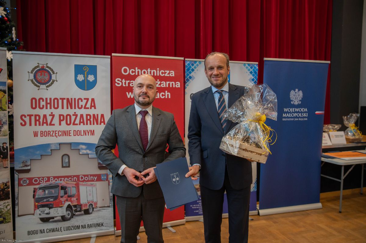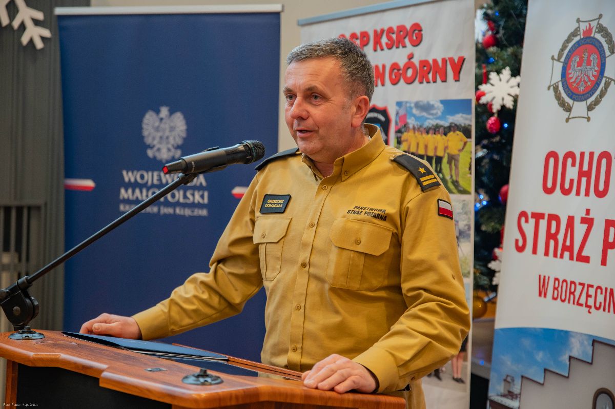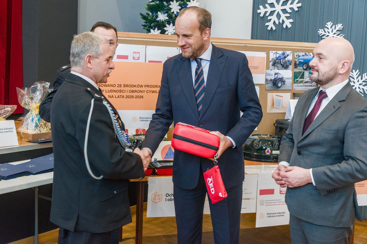 Ta okoliczność była doskonałą okazją by wyrazić szczere podziękowania osobom, bez których realizacja tego przedsięwzięcia nie byłaby możliwa. Słowa szczególnego uznania skierowane zostały do Pana Krzysztofa Klęczara, Wojewody Małopolskiego oraz Pana Ryszarda Śmiałka - Wicewojewody Małopolskiego za okazane zaufanie oraz aktywne zaangażowanie w proces pozyskiwania środków w ramach programu Ochrony Ludności i Obrony Cywilnej na lata 2025–2026. Przekazanie sprzętu i pojazdów było najlepszym dowodem na to, że odpowiedzialne decyzje, partnerska współpraca oraz wspólne działanie administracji rządowej i samorządowej przynoszą wymierne i trwałe efekty, co przełożyło się na wzmocnienie potencjału służb odpowiedzialnych za bezpieczeństwo mieszkańców. Dzięki dobrej współpracy oraz zrozumieniu znaczenia nowoczesnego wyposażenia w działaniach ratowniczych i kryzysowych, możliwe było doposażenie jednostek w sprzęt, który zwiększy skuteczność działań, poprawi bezpieczeństwo ratowników oraz pozwoli szybciej i sprawniej reagować na zagrożenia.