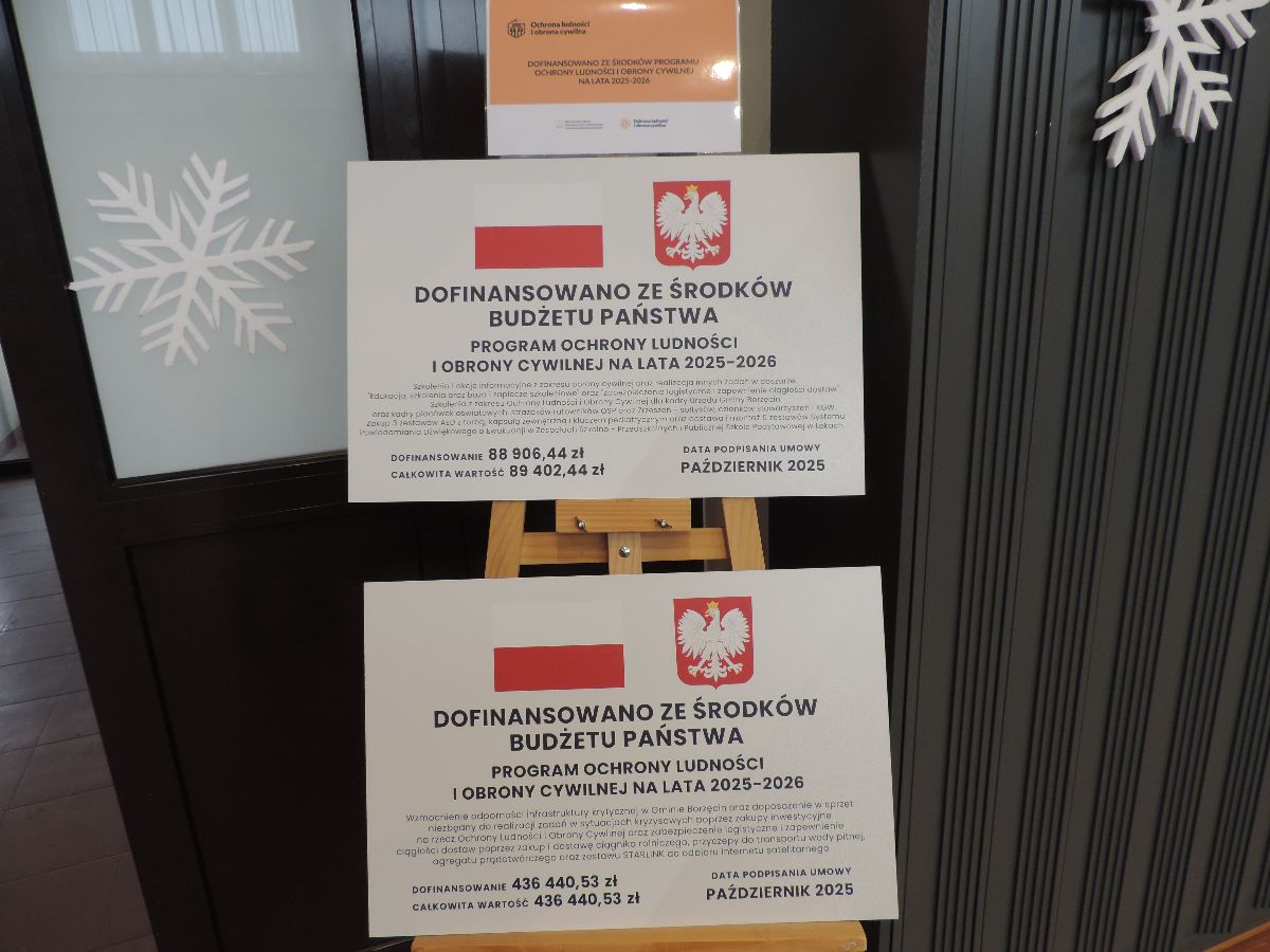 Kolejnym sprzętem, w który zainwestowała Gmina jest zestaw Starlink służący do odbioru internetu satelitarnego o wartości 16 026, 53 zł., który sprawdzi się w sytuacjach zagrożenia przerwą w łączności i będzie stanowił niezawodne narzędzie do uzyskiwania i przekazywania informacji i zapewni koordynację działań samorządu w warunkach awarii infrastruktury naziemnej. Urządzenie będzie pomocne do przekazywania informacji, w tym ostrzeżeń o zagrożeniach czy wskazówek dotyczących ewakuacji i pomocy.