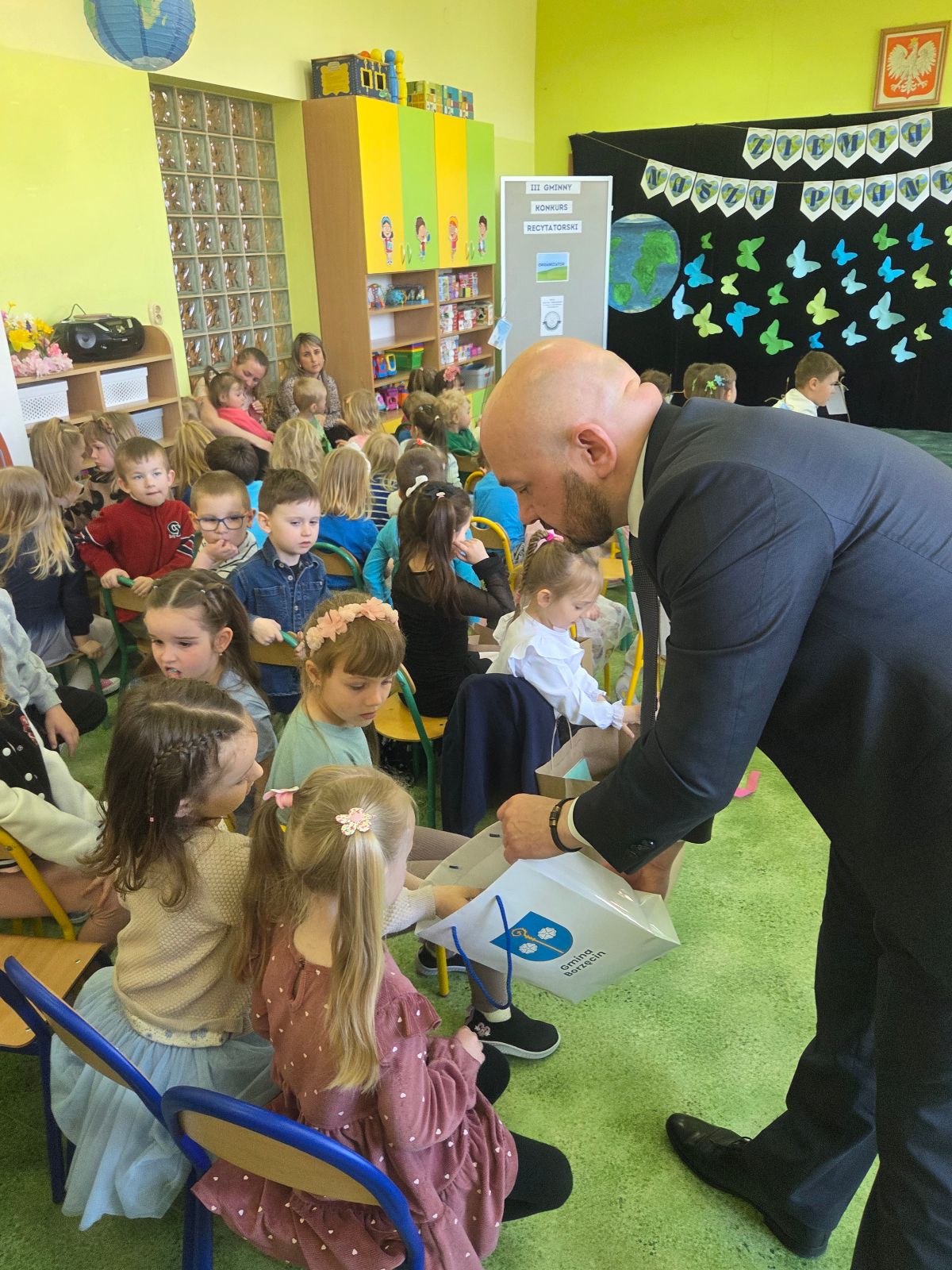 Obecny na sali Wójt Gminy Borzęcin, Paweł Kułak, nie krył podziwu dla odwagi małych recytatorów. Uroczystość została wsparta finansowo przez Gminę Borzęcin, zaś Pan Wójt, który objął konkurs patronatem, podkreślił w swoim wystąpieniu, jak ważne jest łączenie edukacji kulturalnej z postawami proekologicznymi.