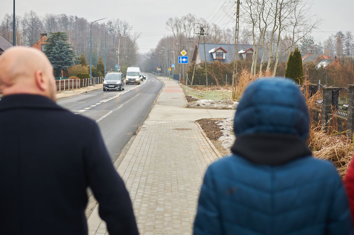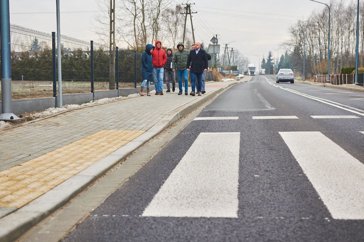 W ramach zadania wykonano jednostronny chodnik na długości 530m wraz z niezbędną infrastrukturą, tj. odwodnieniem (kanalizacją deszczową) po obu stronach drogi oraz doświetlone przejścia dla pieszych wraz z dojściami do nich. Roboty wykonała Firma: Kamil Krupa KAM-TRANS-KOP ze Strzelec Wielkich.