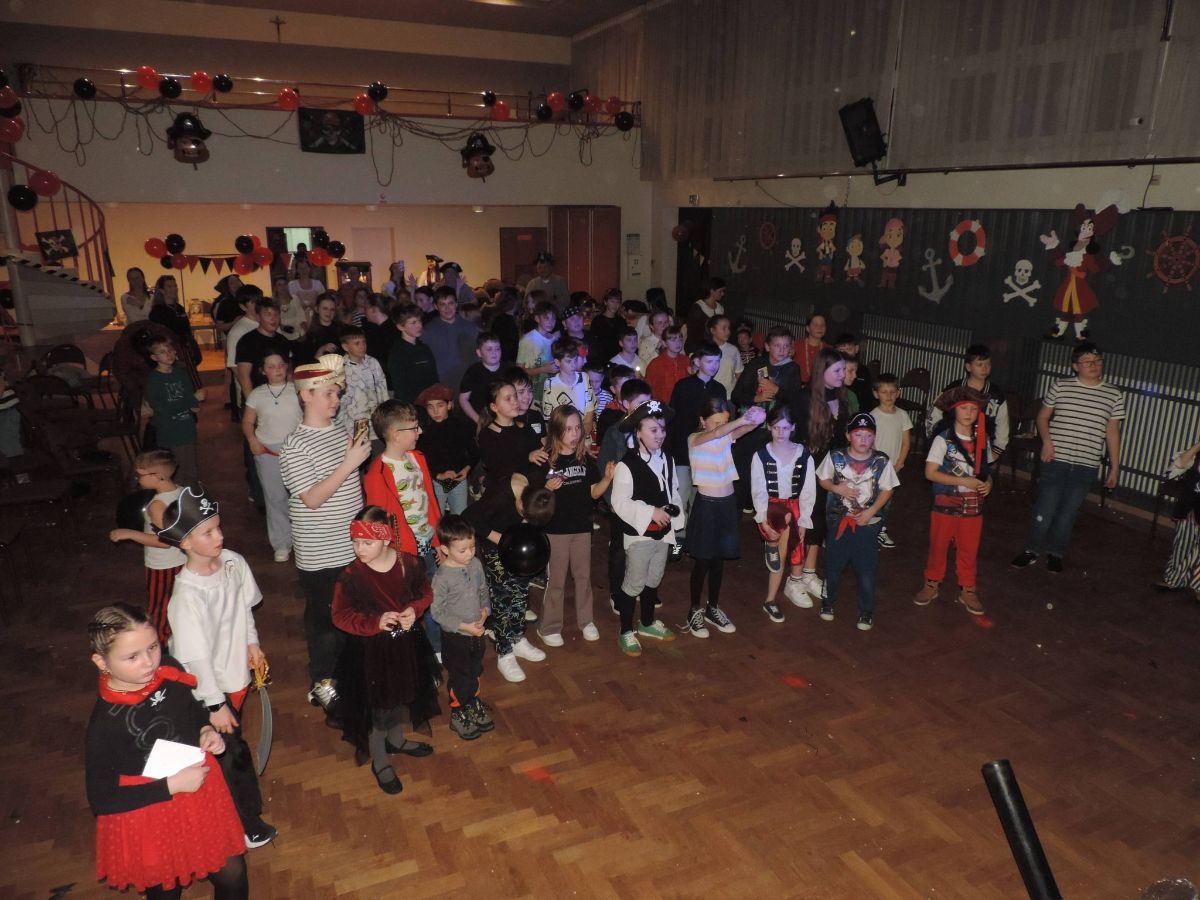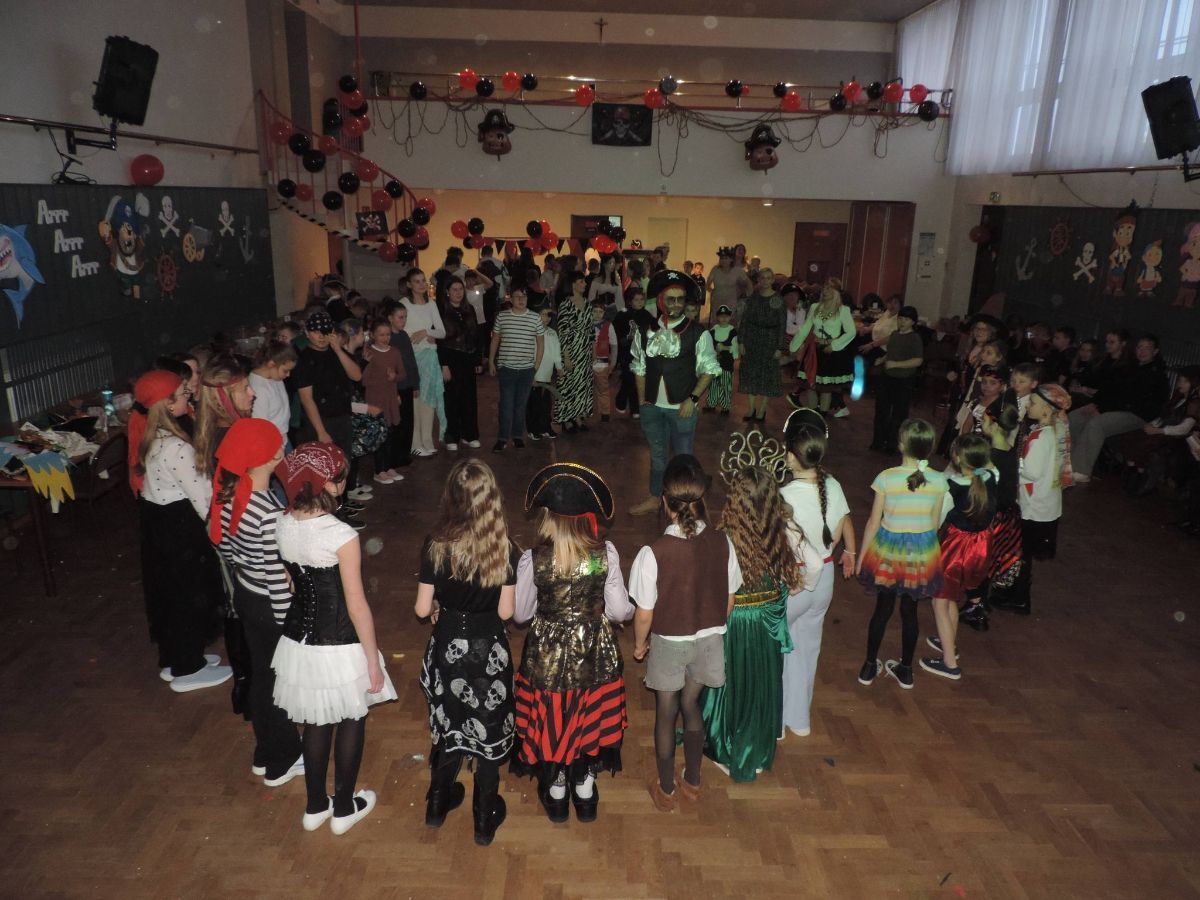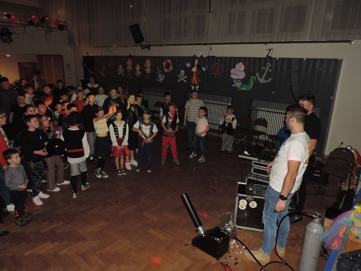 Bal miał wyjątkowy, tematyczny charakter, a uczestnicy zostali zaproszeni do świata pirackich przygód, pełnego zabawy, muzyki i atrakcji przygotowanych specjalnie z myślą o najmłodszych. Wydarzenie poprowadził Animator Jaszczur i Przyjaciele, zapewniając dzieciom liczne animacje, konkursy oraz wspólną zabawę.