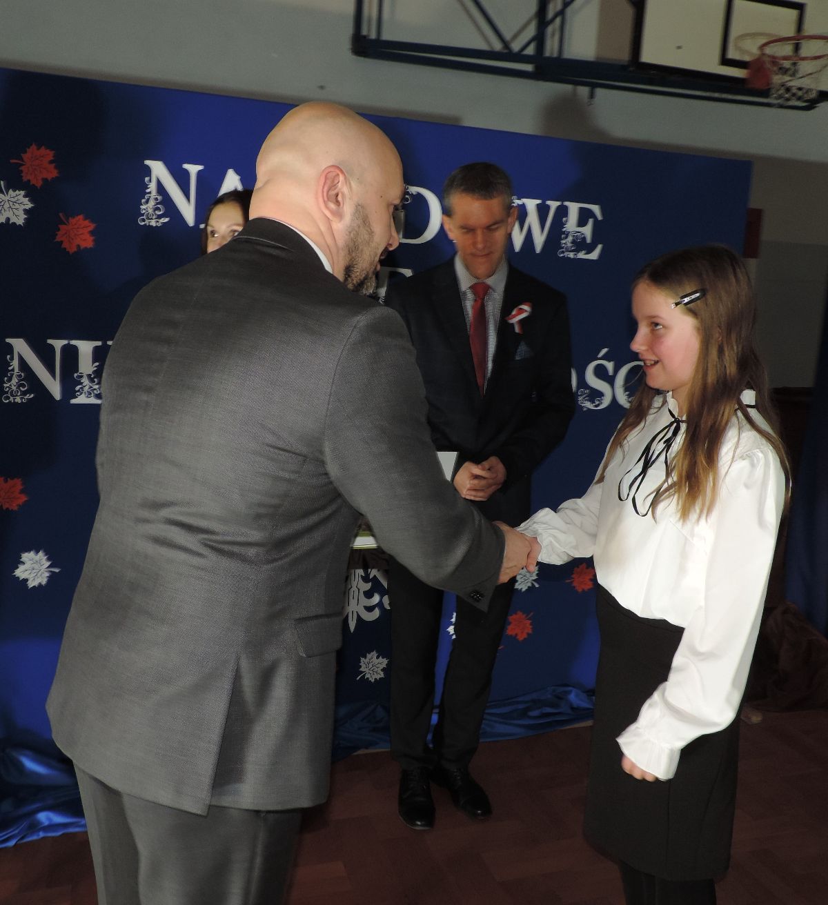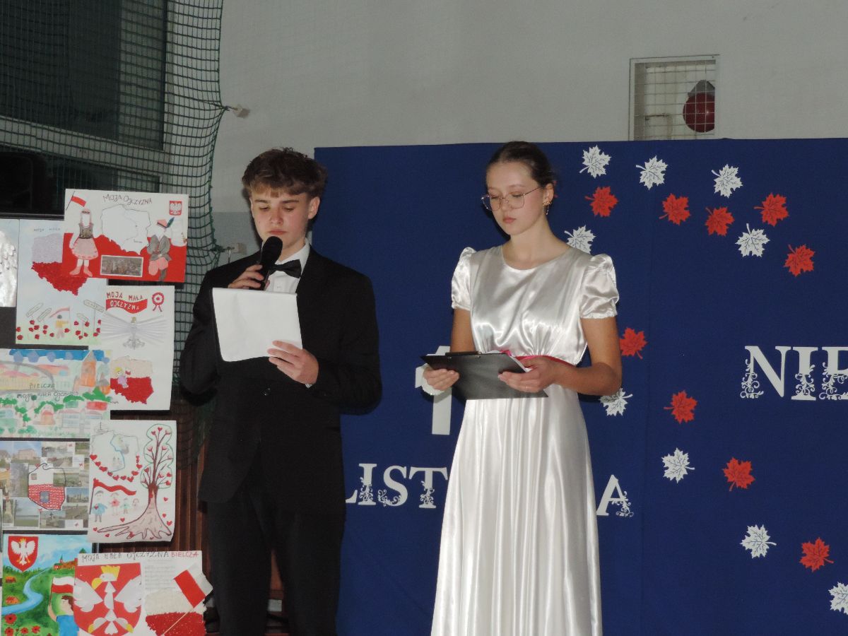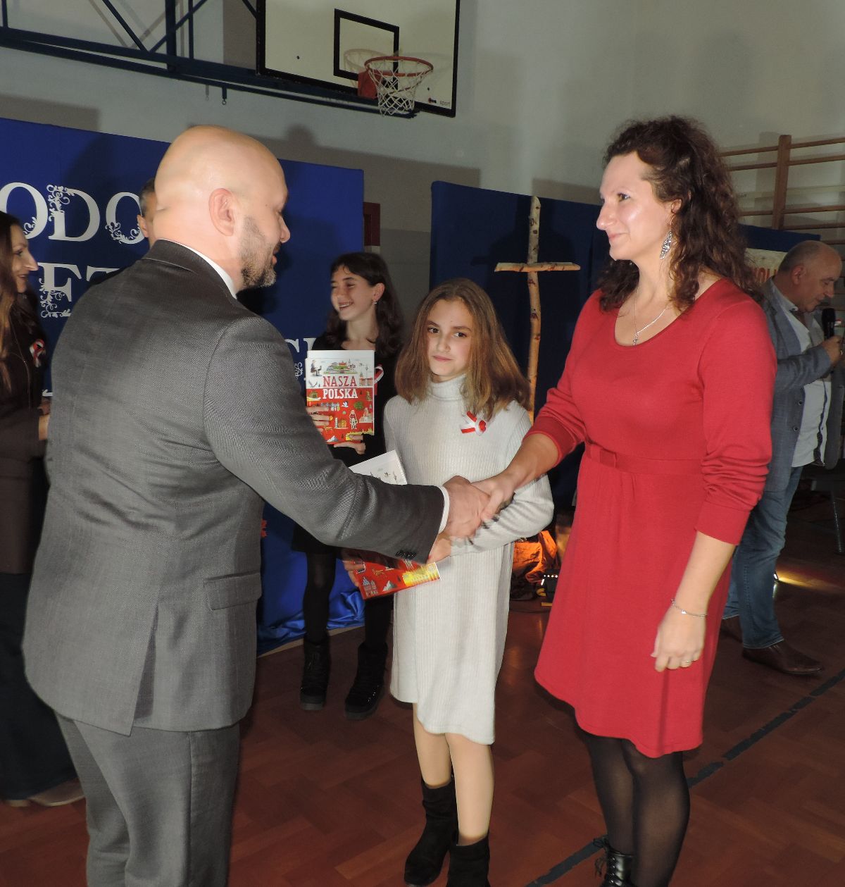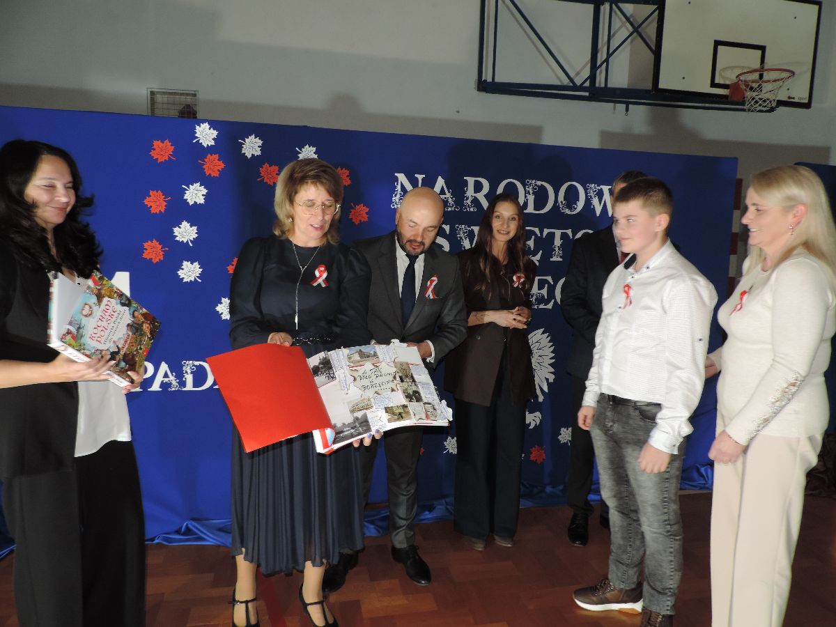 Zaproszonych gości powitała dyrektor Agnieszka Pabian, która w swoim przemówieniu podkreśliła, że patriotyzm to nie tylko święta i uroczystości. To także codzienne, dobre zachowanie – szacunek do innych, dbanie o naszą szkołę, miasto i kraj.