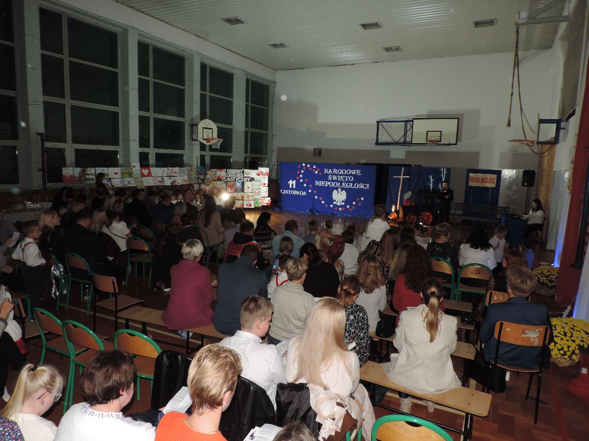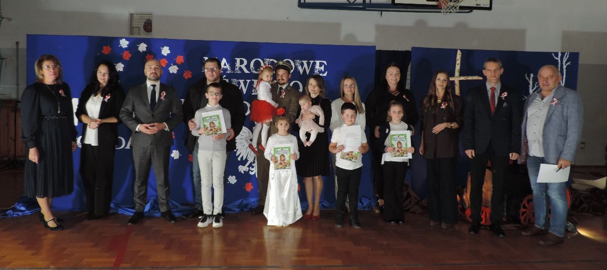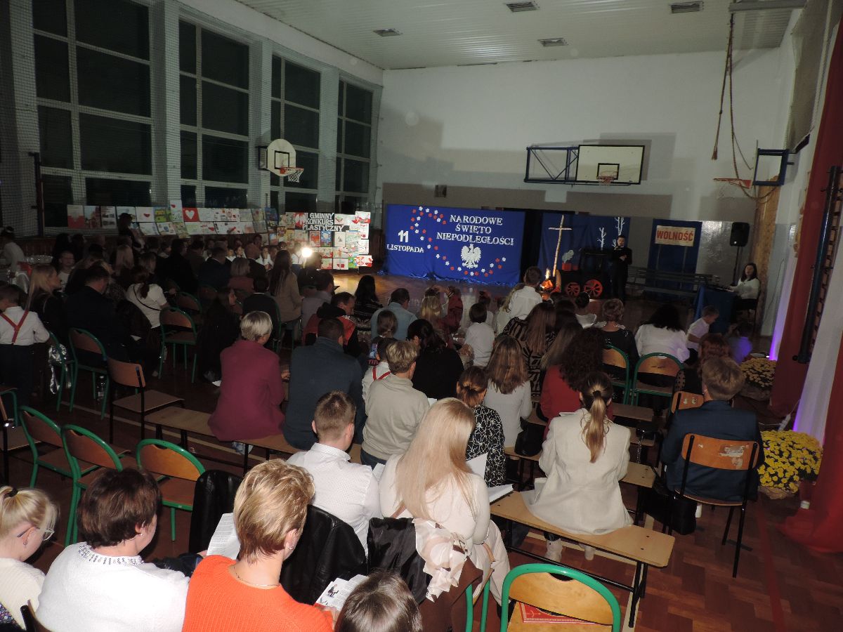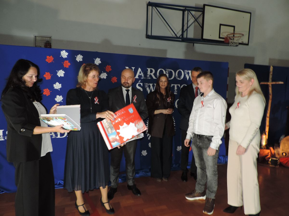 Na zakończenie wszyscy obecni zaśpiewali kilka pieśni patriotycznych, a następnie zostali ugoszczeni słodkim poczęstunkiem, który przygotowali rodzice z poszczególnych klas.