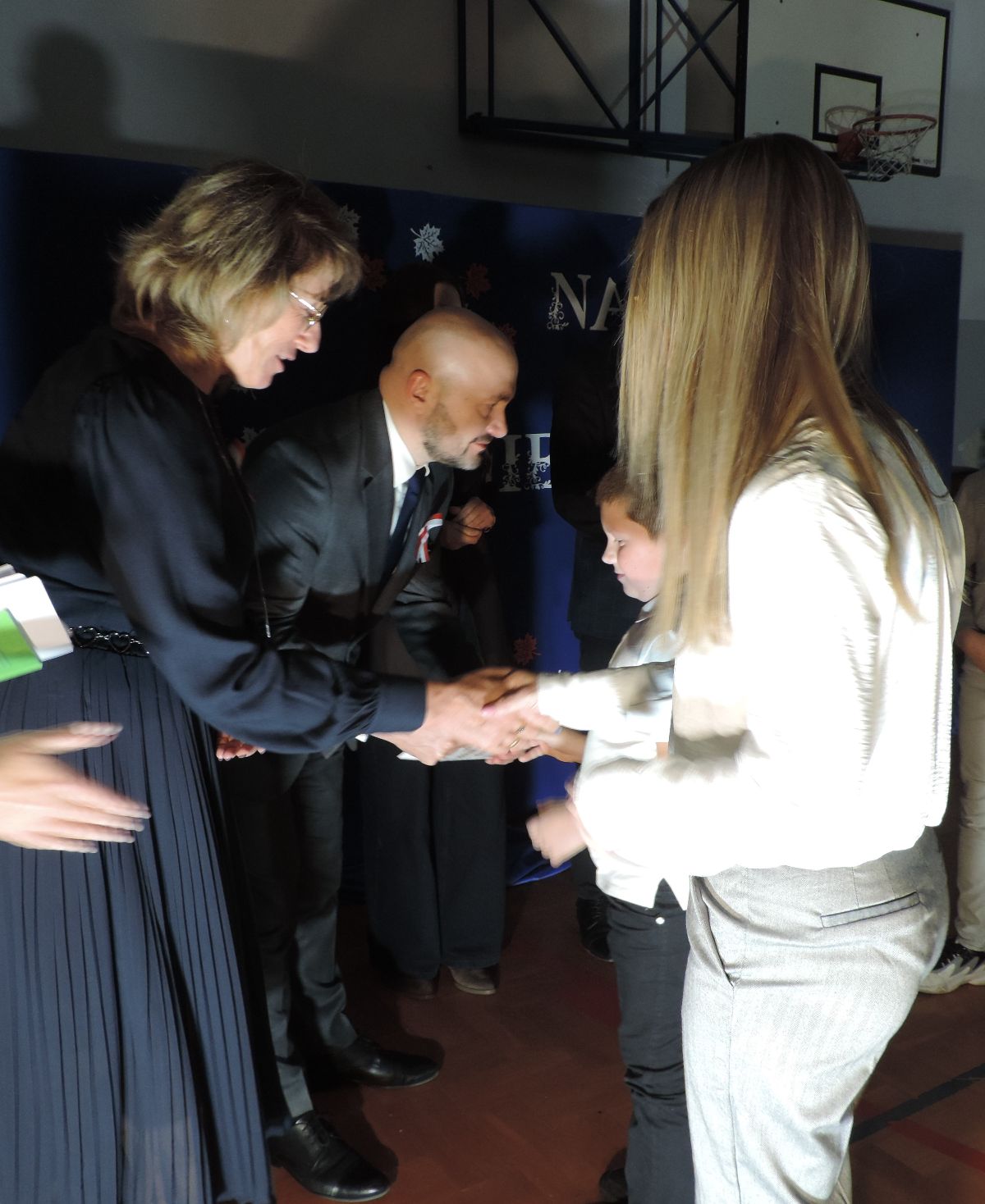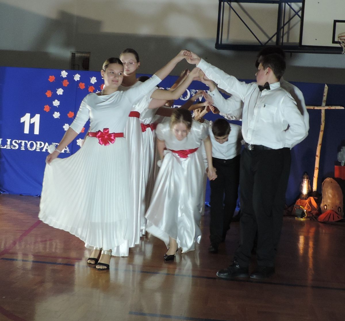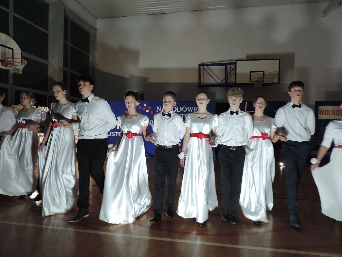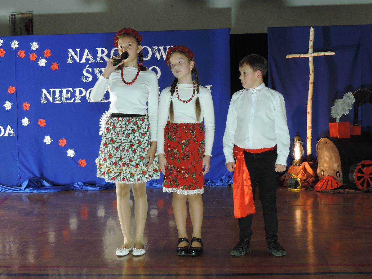 Na zakończenie wszyscy obecni zaśpiewali kilka pieśni patriotycznych, a następnie zostali ugoszczeni słodkim poczęstunkiem, który przygotowali rodzice z poszczególnych klas.