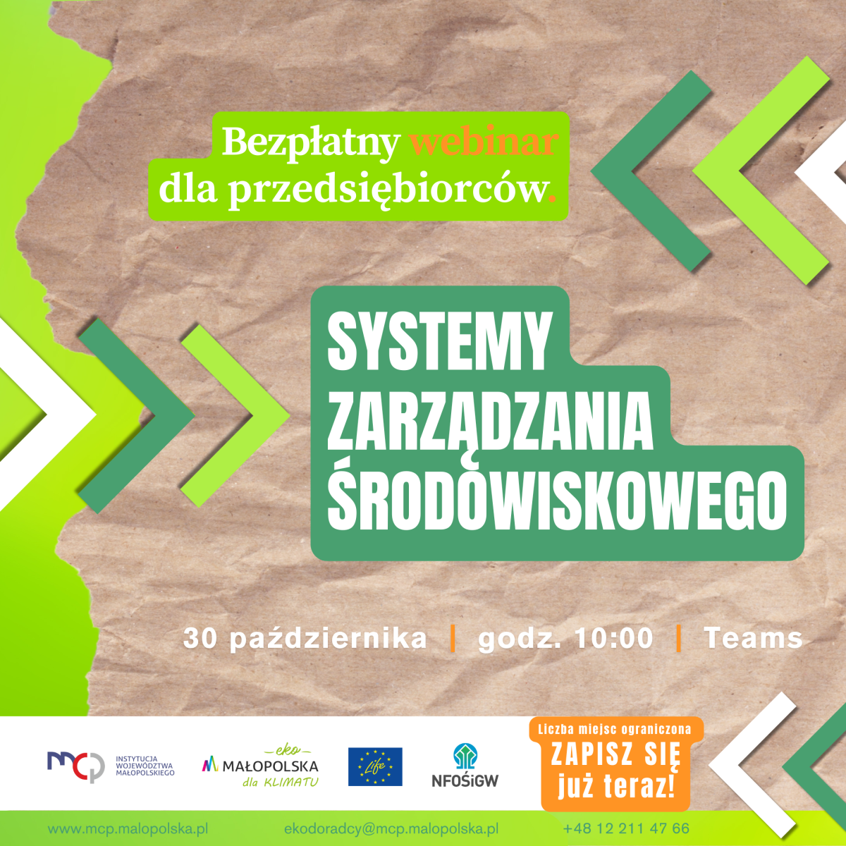 Zaproszenie na bezpłatny webinar na temat wdrażania Systemów Zarządzania Środowiskowego w przedsiębiorstwach.