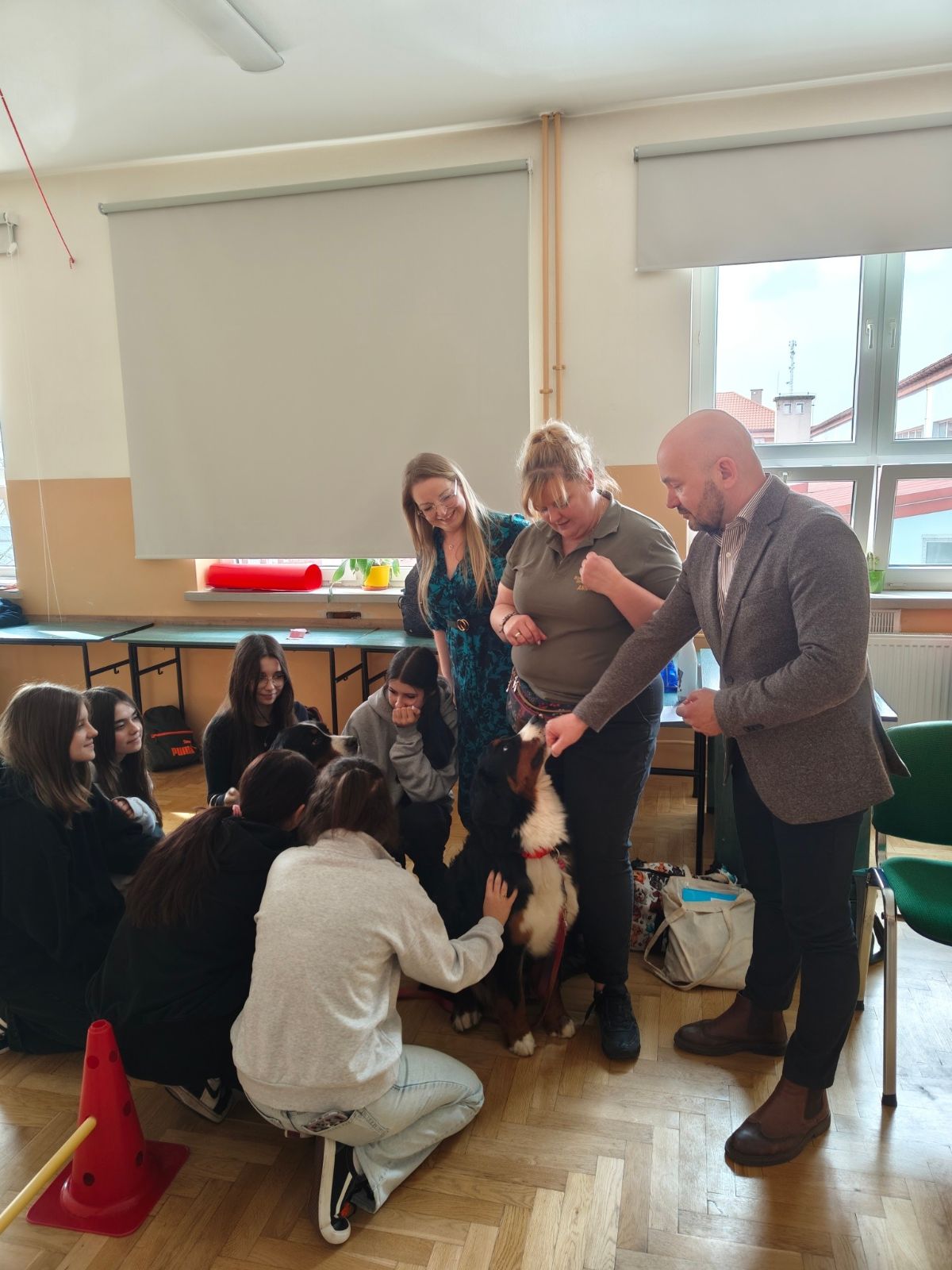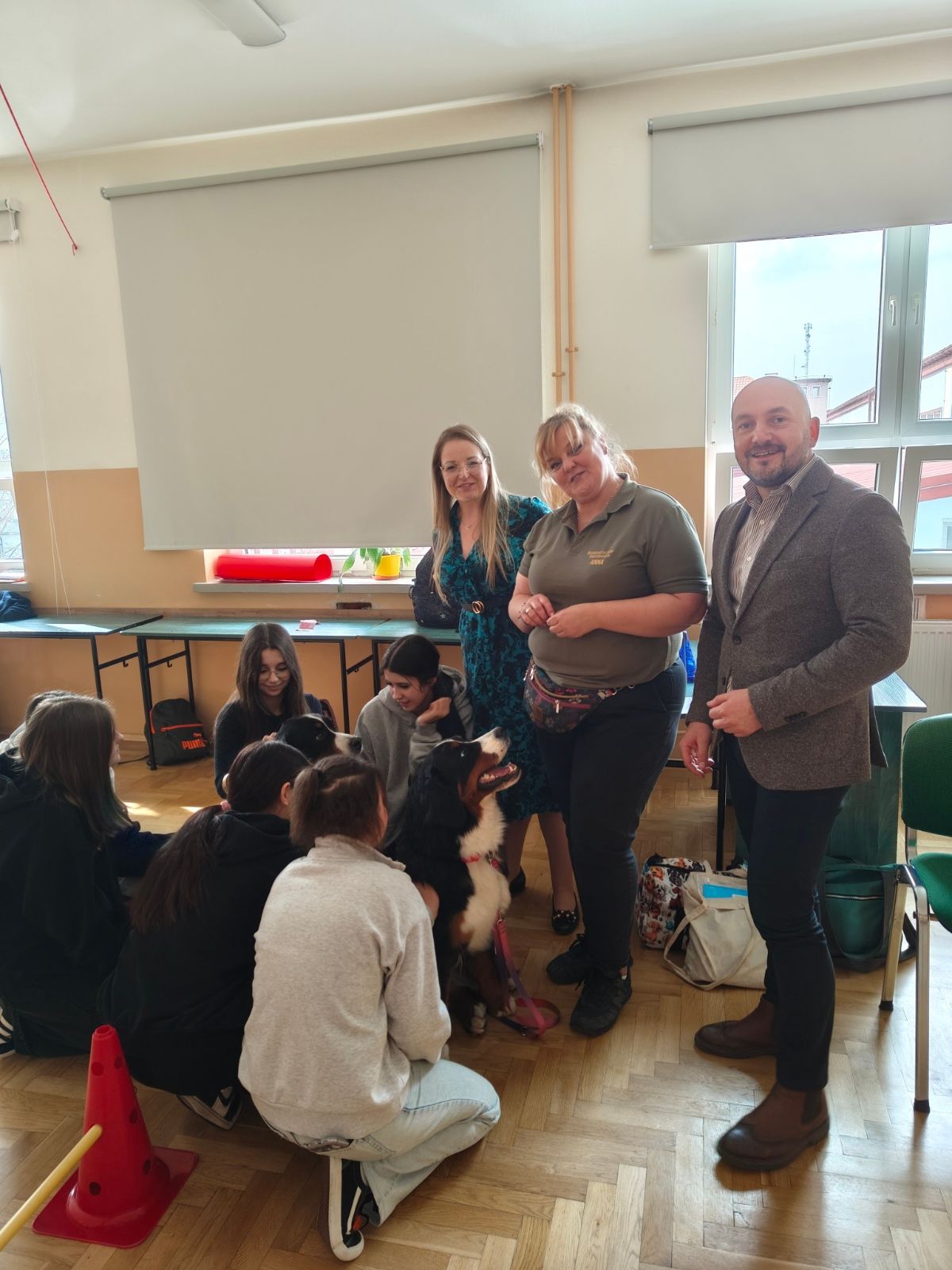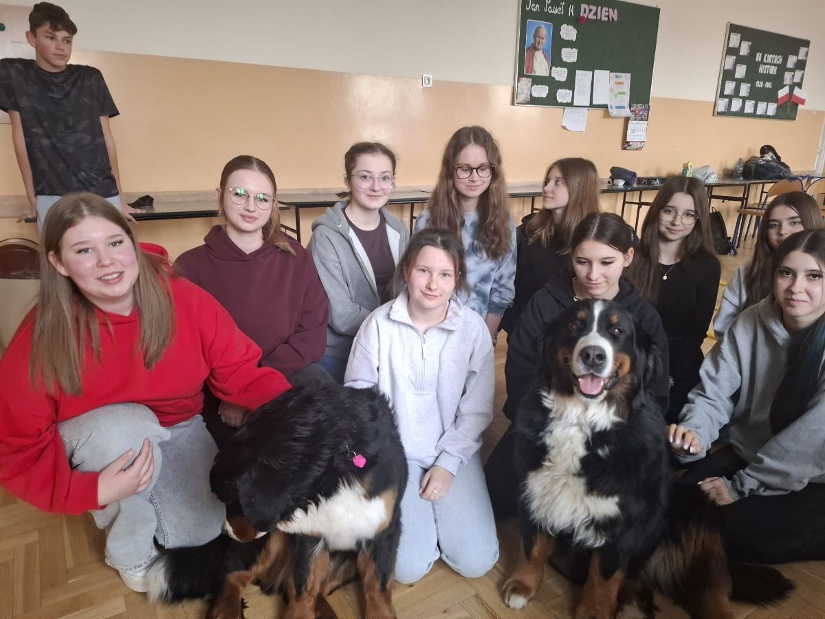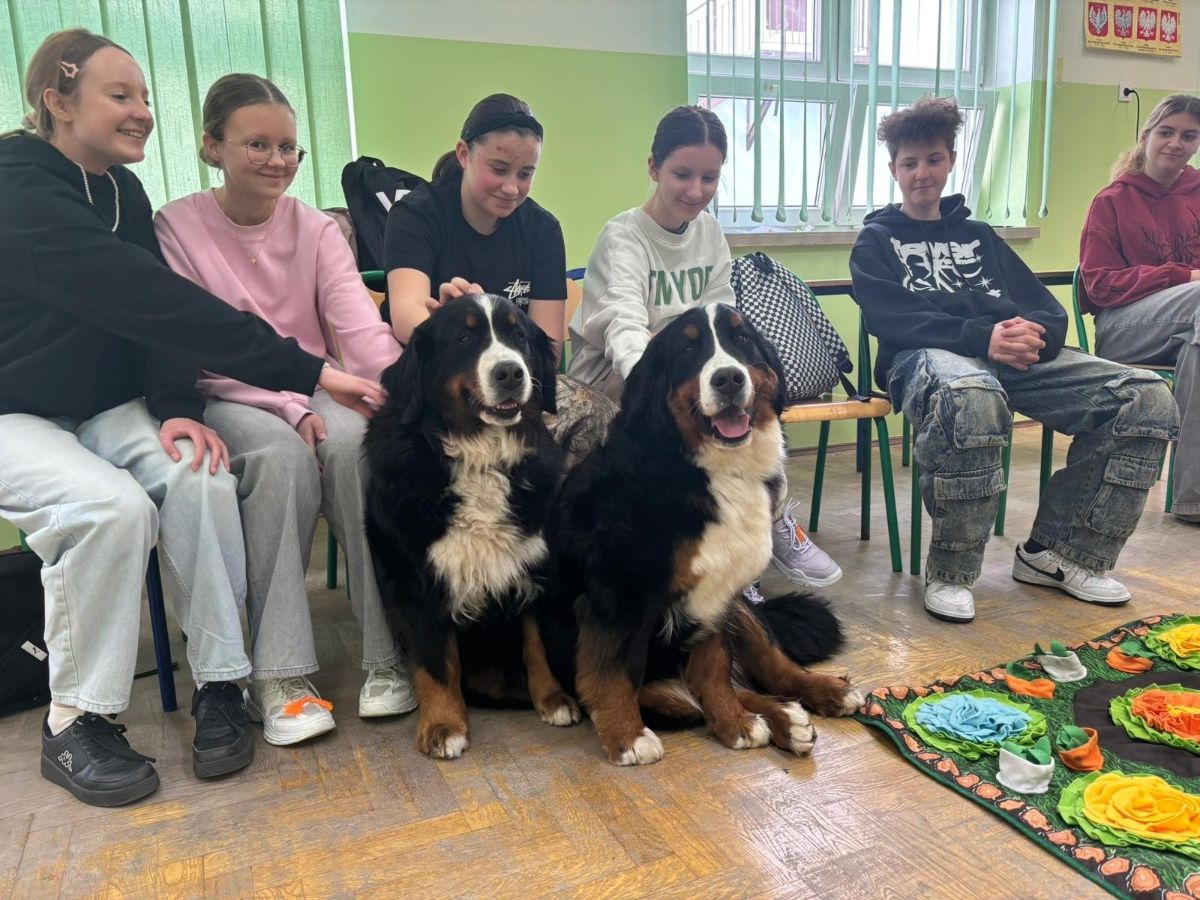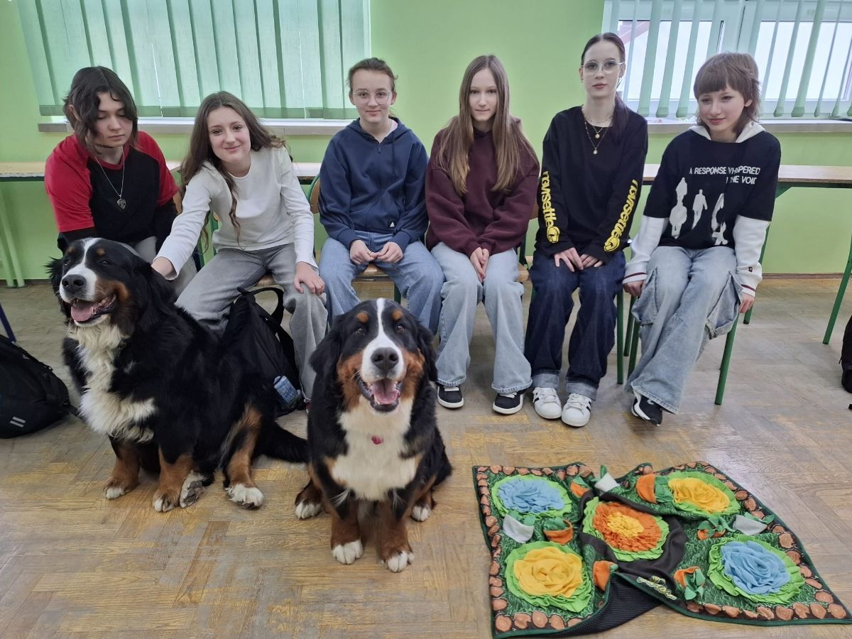 Zajęcia poprowadziła Pani Anna Kozłowska – pedagog, dogoterapeuta oraz behawiorysta, reprezentująca inicjatywę „Psie gadu gadu”. Prowadząca w przystępny i angażujący sposób przekazała młodzieży wiedzę z zakresu profilaktyki uzależnień, a także przybliżyła specyfikę pracy dogoterapeuty.