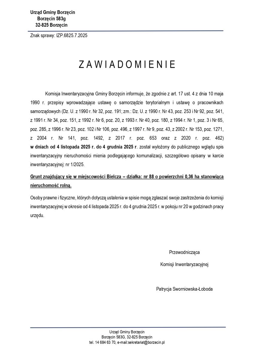 Komisja Inwentaryzacyjna Gminy Borzęcin informuje