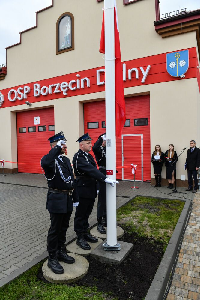 Kroniki prowadzone przez druhów z Borzęcina Dolnego potwierdzają, że pierwsze otwarcie tego obiektu miało miejsce 60. lat temu, w 1964 roku. Tegoroczna uroczystość zgromadziła wielu gości, reprezentujących władze państwowe i samorządowe wszystkich szczebli, przedstawicieli straży pożarnych, zarówno zawodowej, jak i ochotniczej, duchownych oraz kierowników gminnych jednostek organizacyjnych. Licznie zjawili się także strażacy z zaprzyjaźnionych jednostek. Scenariusz przekazania obiektu powstał w oparciu o odpowiedni ceremoniał, stąd wydarzenie rozpoczęto od przeglądu pododdziałów i meldunku, jaki dowódca uroczystości druh Krzysztof Wojas złożył prezesowi zarządu Oddziału Powiatowego ZOSP RP druhowi Marianowi Zalewskiemu. Następnie podniesiono flagę państwową na maszt i odśpiewano hymn państwowy. Dowódcą pocztu flagowego był druh Tomasz Hebda, flagowym – druh Piotr Satała, asystującym – druh Paweł Cieśla. Scenariusz przekazania obiektu powstał w oparciu o odpowiedni ceremoniał. Kilkugodzinne ćwiczenia przed uroczystością sprawiły, że wszystko przebiegało sprawnie i płynnie, zgodnie ze strażackim protokołem. W trakcie uroczystości, za wieloletnią, ofiarną działalność w ochronie przeciwpożarowej, dla dobra społeczeństwa i Rzeczypospolitej Polskiej nadano Złoty Znak Związku Ochotniczej Straży Pożarnej w Borzęcinie Dolnym. Złotym medalem za zasługi dla pożarnictwa wyróżniony został także druh Grzegorz Małek.