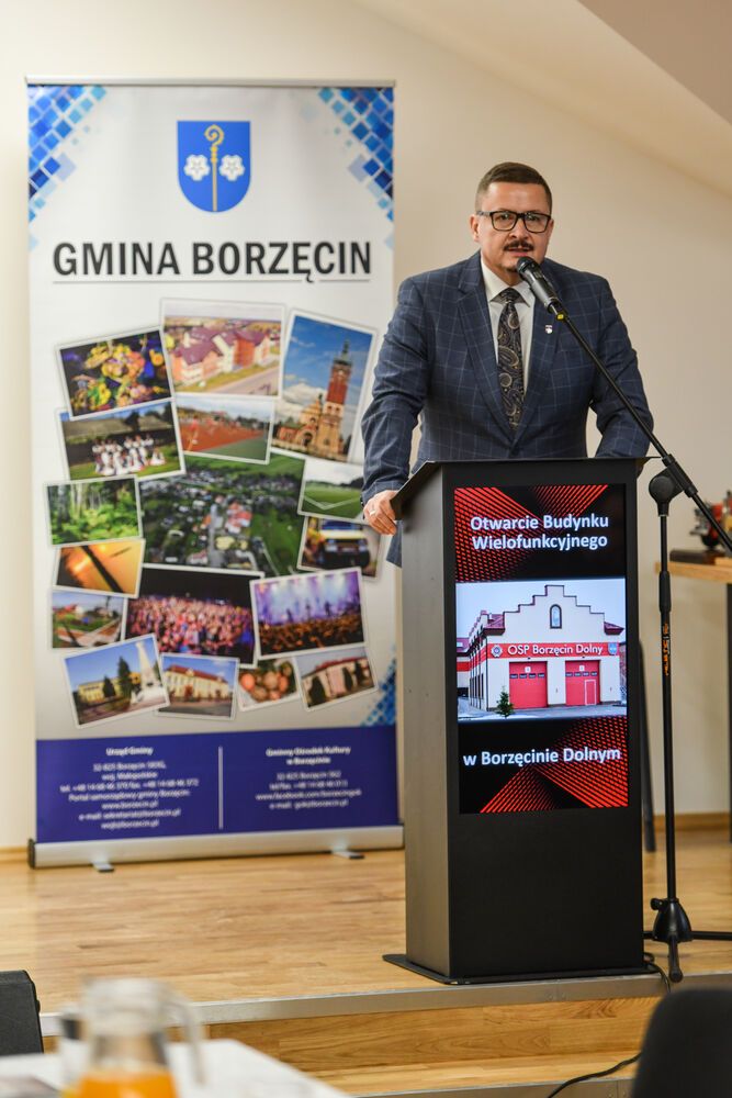 Wójt Janusz Kwaśniak podziękował wszystkim, którzy w jakikolwiek sposób wspomogli realizację zadania. - Ta inwestycja dowodzi, że tego typu przedsięwzięcia niejednokrotnie wymagają czasu. Od fazy regulacji stanu prawnego, poprzez wykonanie projektu, pozyskanie dofinansowania, po realizację procesu budowlanego i wyposażenie obiektu do oddania i użytkowania to często długa droga. To także wynik efektywnej współpracy z samorządem województwa małopolskiego i administracją rządową. Słowa podziękowania kieruję na ręce marszałka województwa małopolskiego Witolda Kozłowskiego za życzliwość i wsparcie szeregu naszych inicjatyw oraz troskę o równomierny rozwój województwa. Dziękuję wiceprzewodniczącemu sejmiku, a zarazem radnemu województwa Wojciechowi Skruchowi za wieloletnią, owocną współpracę, stały kontakt z samorządem i organizacjami działającymi w gminie Borzęcin oraz wsparcie w zakresie pozyskiwania środków z budżetu województwa małopolskiego. Dziękuję posłowi na Sejm RP Norbertowi Kaczmarczykowi, za skuteczność w reprezentowaniu interesu wyborców w Warszawie. Swoją wdzięczność wyrażam w imieniu samorządu, druhów ochotników i wszystkich mieszkańców – mówił wójt Kwaśniak, podkreślając, że tylko w ostatnich trzech latach gmina Borzęcin pozyskała ponad 57 milionów złotych z funduszy zewnętrznych, zarówno krajowych, jak i unijnych.