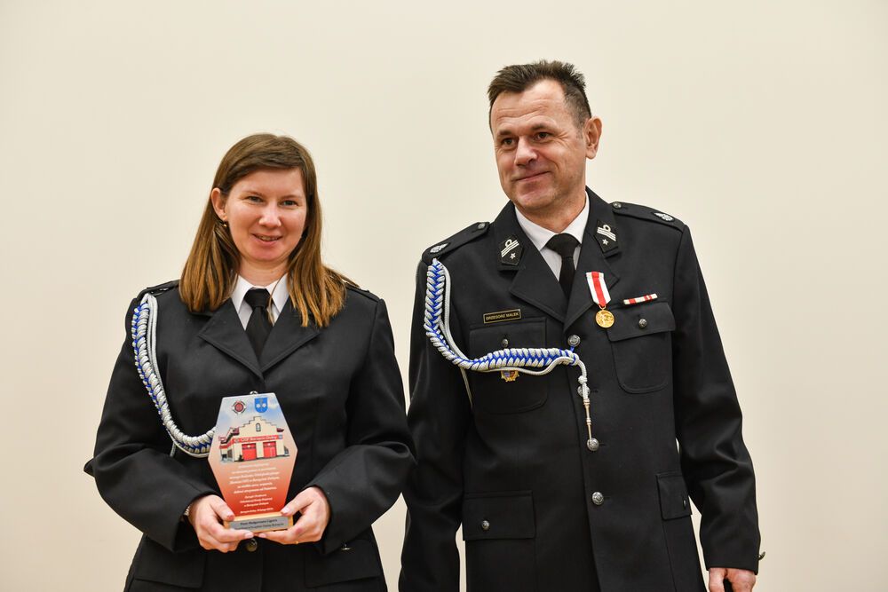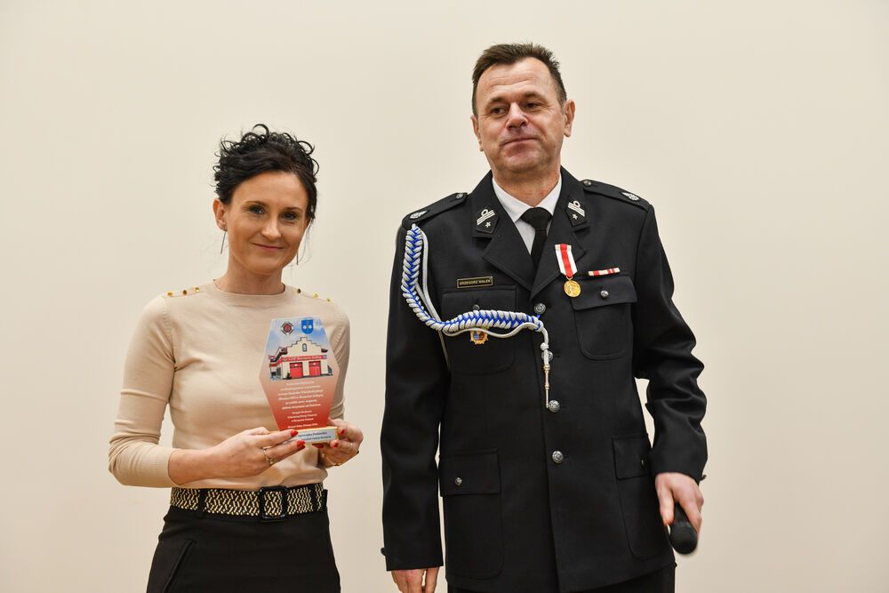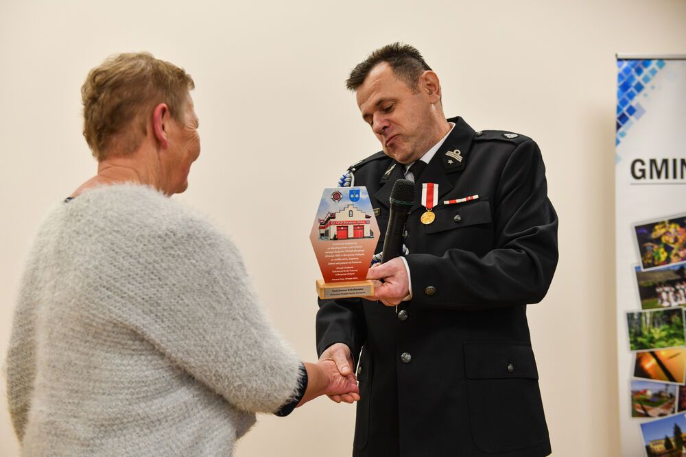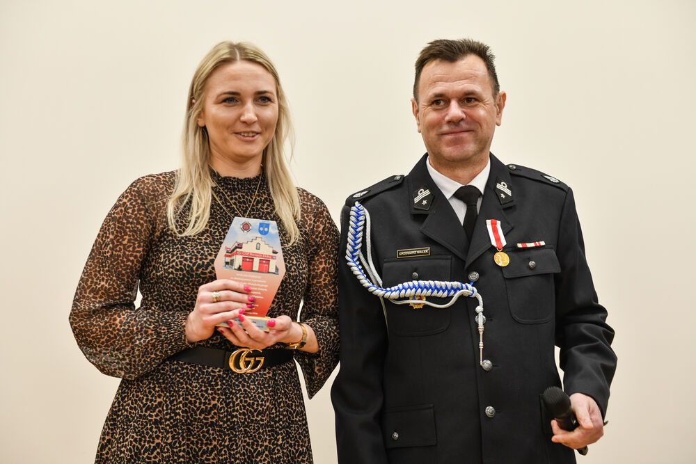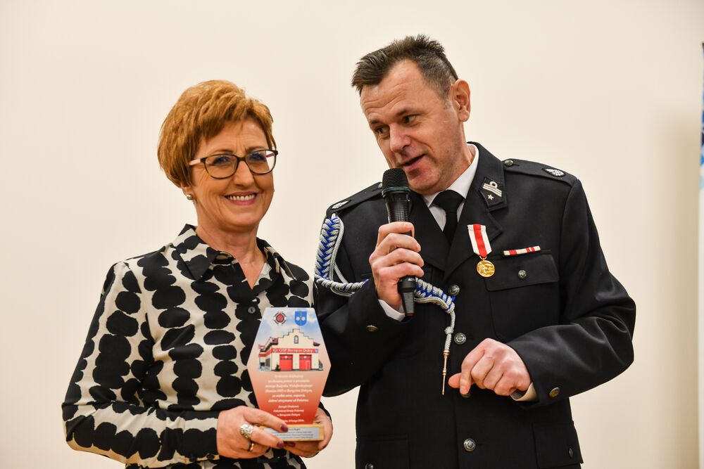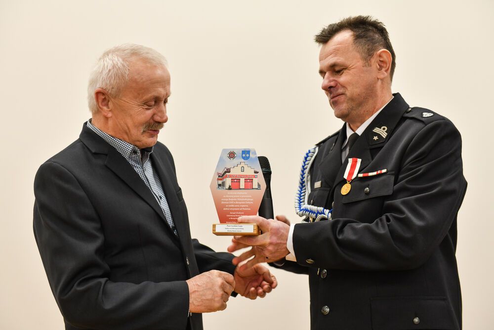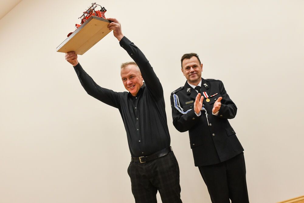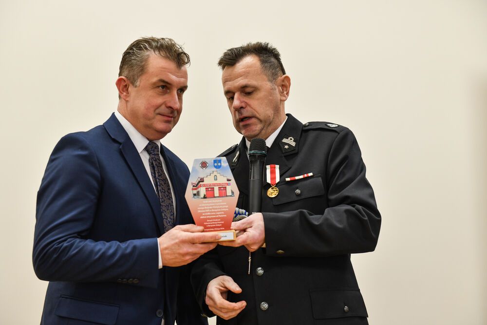 Okolicznościowe podziękowania i pamiątkę otrzymał także prezes Małek z rąk wzruszonych kolegów strażaków.