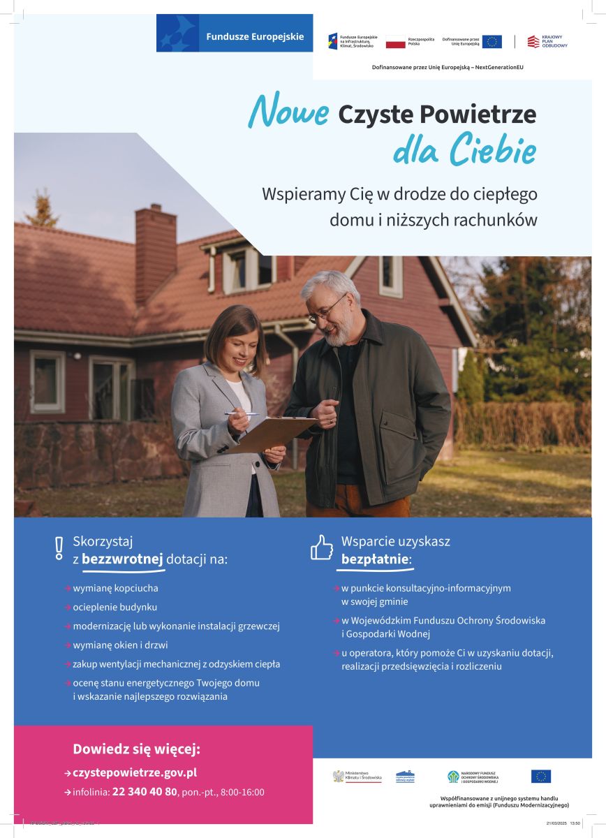 Szczegółowe informacje o programie są dostępne na stronie:czystepowietrze.gov.pl.